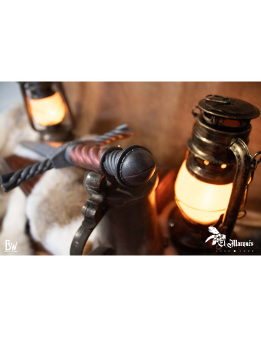 Bovendien is het gedetailleerde handvat van 10 cm verfraaid met metaal en echt leer eromheen gewikkeld, wat het een stijlvolle en authentieke uitstraling geeft. Deze ergonomische handgreep geeft je een comfortabele en veilige grip, waardoor je het zwaard met precisie en behendigheid kunt hanteren.